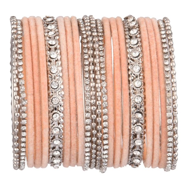 - Embellished with velvet bangles, cz crystal studded style silver tone beaded metal bangle bracelet, gives it a perfect trendy contemporary look. Studded with dazzling rhinestone crystals for an eye-catching sparkle.