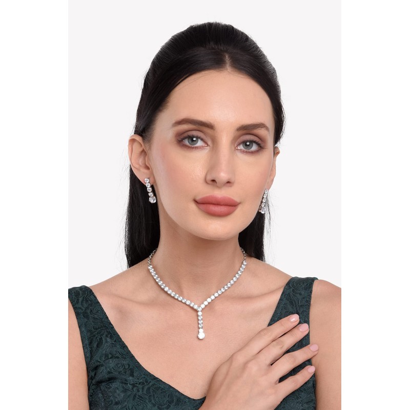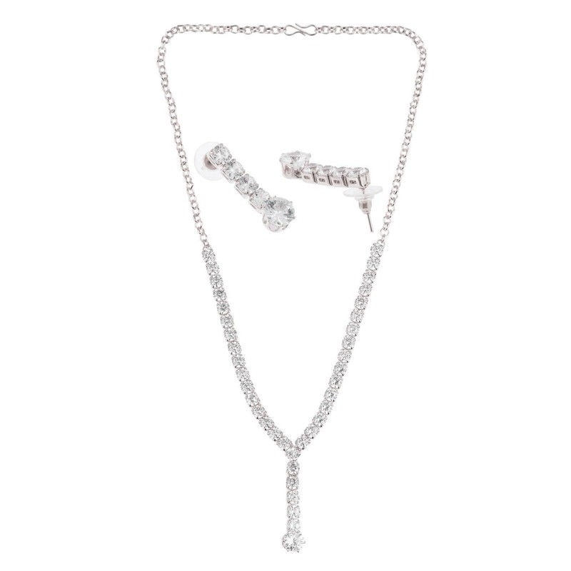 - This trendy western cum simple bridal tennis necklace earrings set will go with everything in your closet from ethnic to party wear festival or any other occasion. Attractive charming fashion necklace earrings jewelry set. Ideal for prom, dating, party, wedding, engagement, graduation, daily wear, formals, Bridesmaids, Mother of the Bride, Pageants, Homecoming, or any other Special Occasions