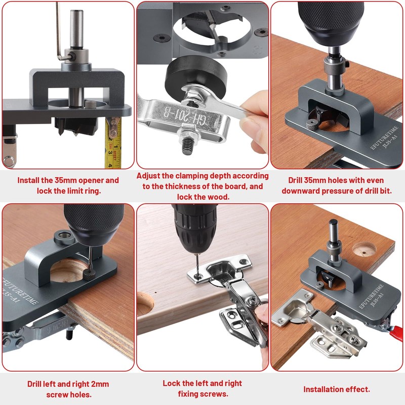 EFUTURETIME 35 mm Drilling Template Door Fitting Set Template Pot Hinge Drilling Gauge, Concealed Hinge Gauge Hole Saw, Hole Punch Locator Drill Guide for Woodworking