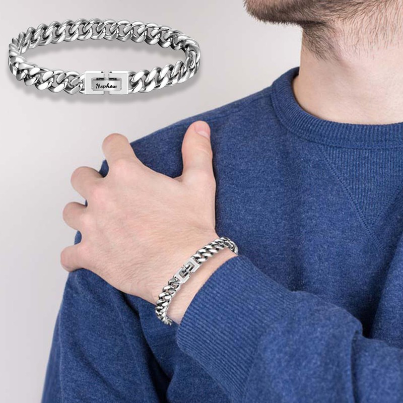 - Gifts for Nephew: Tthis cool nephew bracelet is engraved with the word of "Nephew" on it. Send this best nephew gifts for him to express your love. When he wear this bracelet, he will never forget how much he means to you