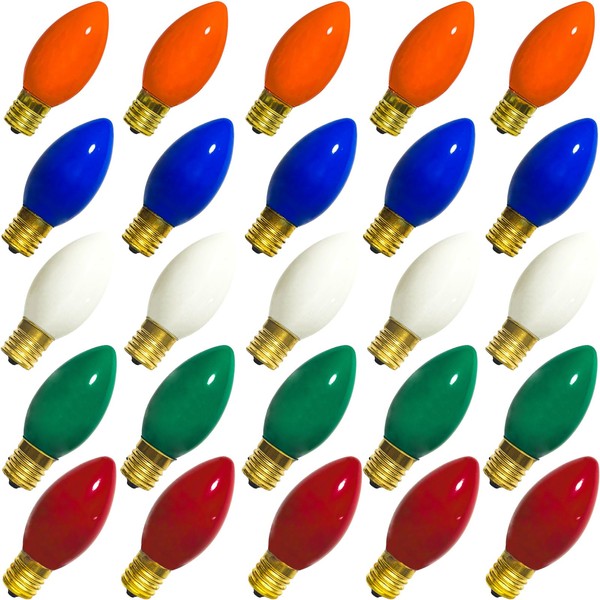 Egcol 25 Pack C9 Multicolor Replacement Bulbs, Incandescent E17 Intermediate Base Bulbs for Christmas String Lights, 7 Watt Night Lights Replacement Bulbs, 7W 120V Bulbs