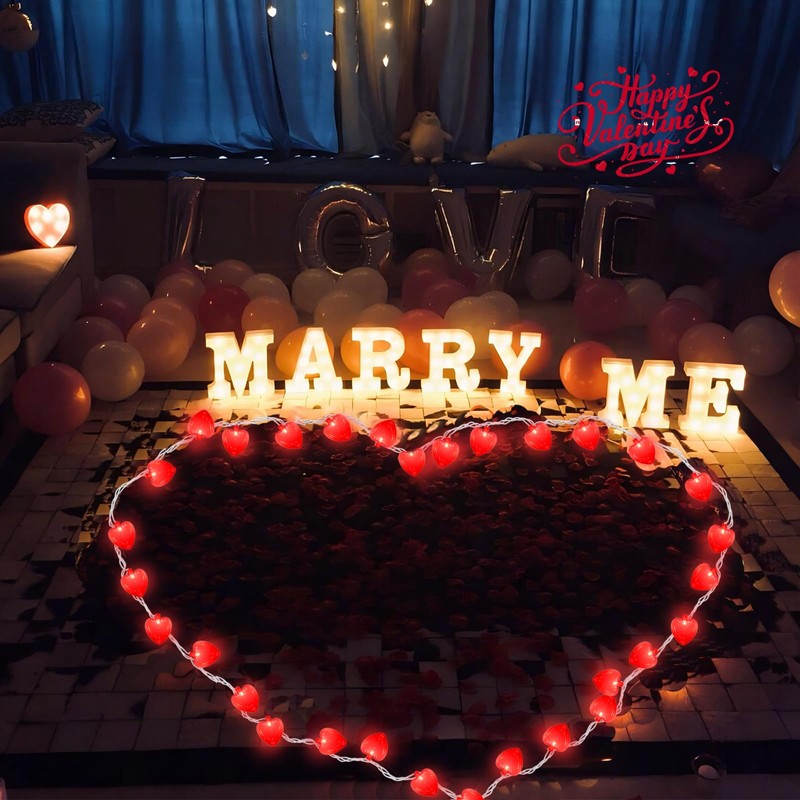 Featuring 10 charming red heart-shaped LED lights, this string is designed to create an enchanting ambiance for any romantic occasion.
