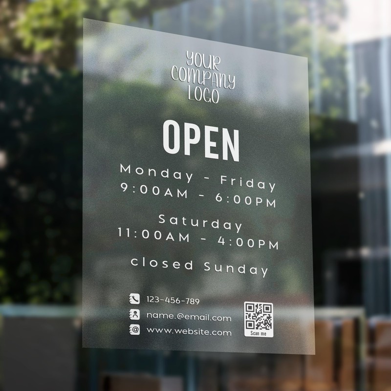 This meticulously crafted decal is designed to communicate your hours of operation clearly and stylishly, making it an essential addition to any storefront, office, or business entrance. With the latest peel and stick technology, our vinyl decals offer superior adhesion to glass and other smooth surfaces, ensuring a long-lasting and vibrant display that withstands the test of time. Imagine welcoming your customers with a sleek, personalized sign that not only informs them of your business hours but also enhances the overall aesthetic of your establishment. Our custom signs for business allow you to showcase your store name, logo, and work hours in a variety of fonts, colors, and designs. This level of customization ensures that your business sign perfectly reflects your brand's identity and professionalism. open closed sign, business hours sign, qr code sign, qr code, custom logo, custom logo sign, logo sign, customized sign, custom signs for business, open closed signs for business, business sign, open closed sign for business door, office hours sign, open hours signs for business, business hours, business hours sign for glass door, business hours sign for window, hours of operation sign, hours of operation signs for business, hours sign, open hours sign, business hours sign for door, business hours window decal, restaurant supplies, open sign, custom decal, qr code stickers, open signs for business, anuncios para negocios personalizados, letreros para negocios, business supplies, logo signs for business wall, office hours signs for business door, open sign with hours, store hours, store hours signs for business, store hours sign, led open sign hours, office hours door sign, office hours sign for door, open 24 hours sign, open signs for business with hours, open sign with hours of operation, outdoor hours sign, store hours sign for glass door, store hours sign window, store hours window decal, vinyl business hours, window hours sign, business hours sign store window vinyl decal, costco store hours, hawaiian time hours sign, hours of operation signs for business glass door, hours open sign, office hours decal, open closed sign with hours, restaurant hours sign, store hours sign changeable, open hours decal, opening hours sign, restaurant hours, black business hours sign, store hours sign decal, buisness hours sign, business hours cling, business hours organizer, business hours sign kit, business store hours, holiday hours sign, large business hours sign, work hours sign, vinyl store hours, sign with hours, shop hours sign, salon hours, business sign hours, business open hours sign, business hours sticker, business hours decal, buisness hours