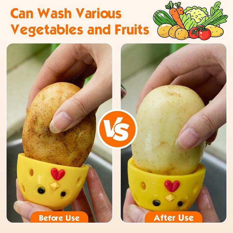 Egg Brush Cleaner, Egg Cleaner Scrubber for Fresh Eggs, Cute Chick Shaped Silicone Egg Washer, Reusable Multipurpose Washing Egg Tool for Fruits and Vegetables(Yellow, 1 Set)