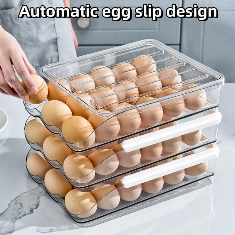 Egg holder for fridge, Egg organizer for refrigerator, Automatic Rolling Egg Container, Egg storage Container Organizer, Clear Plastic Egg Tray, Egg dispenser, Egg rack (Double-layers)