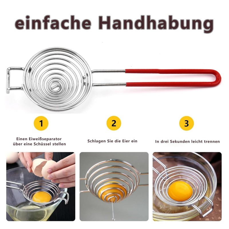 - Spiral design: egg yolk separator is made of spiral structure, hanging ear design, easy to use, all-round filtration, can separate protein and yolk faster.