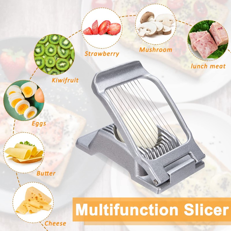 • Wide Application The multifunctional egg slicer is very suitable for cutting soft foods such as eggs, mushrooms, ham, strawberries, kiwi, bananas, cheese, butter, etc. It is a simple and practical kitchen aid that makes cooking easier.