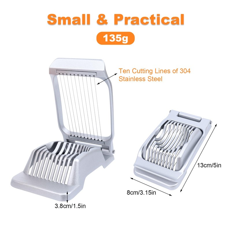 - Egg cutter: This egg cutter features cutting shapes in a cutter, it cuts hard boiled eggs evenly into slices and wedge shape and helps you garnish your salads and sandwiches with hard-boiled eggs in seconds.