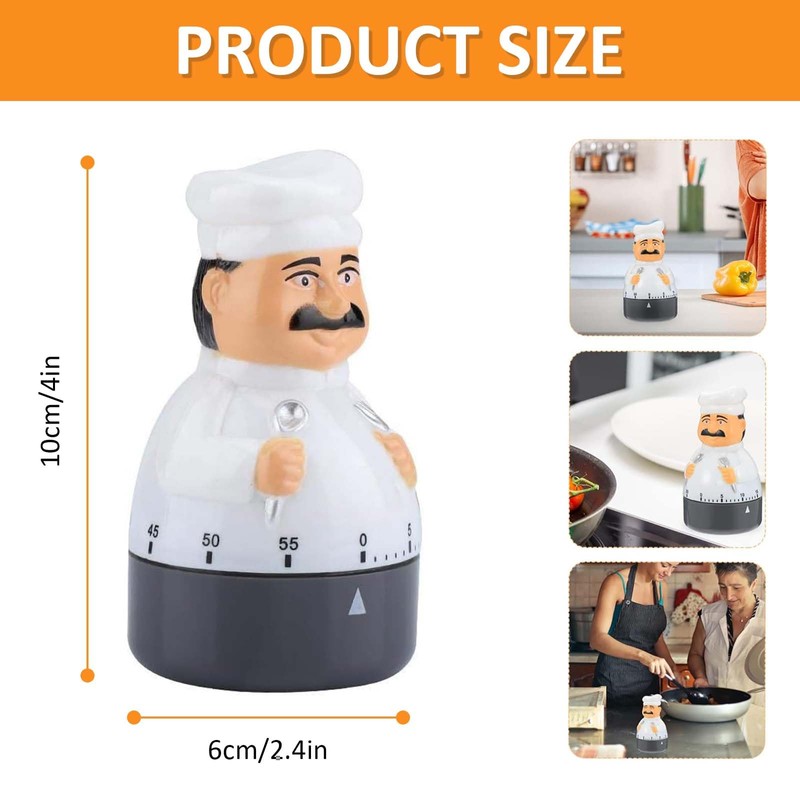 - Chef design: the cute chef shape is not only a practical kitchen timer, but can also be used as a kitchen decoration. The adorable and elegant appearance of the cooking timer adds a touch of charm to your surroundings.