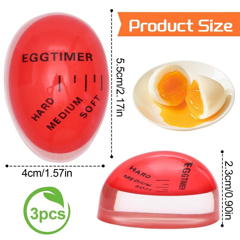 - Effective egg timer: enjoy your eggs as you like with the egg cooking gadget. The egg timer clearly shows when the boiled egg is soft, medium and hard in 3 colour changing modes. So you can choose how to cook the egg without guessing.