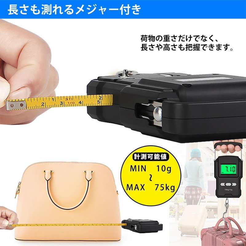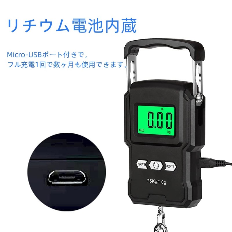 EGGEIL Micro-USB Rechargeable Digital Fishing Scale (Up to 165.3 lbs (75 kg) / Large Size Compatible with 3.3 ft (1 m) Tape Measure, Portable Digital Travel Scale, High Precision Electronic Hanging Scale for Home Use, Japanese Instruction Manual