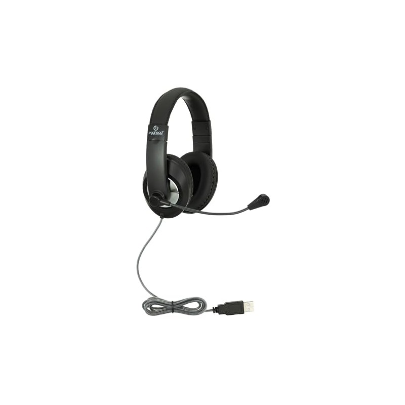 Egghead Premium Over-Ear School Testing & USB Multimedia Headset with Adjustable Headband, Leatherette Cushions, 360° Pivoting Microphone, and Resealable Storage Bag