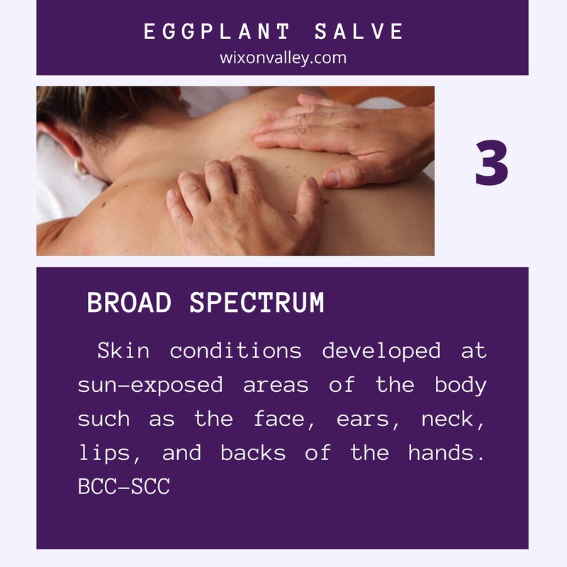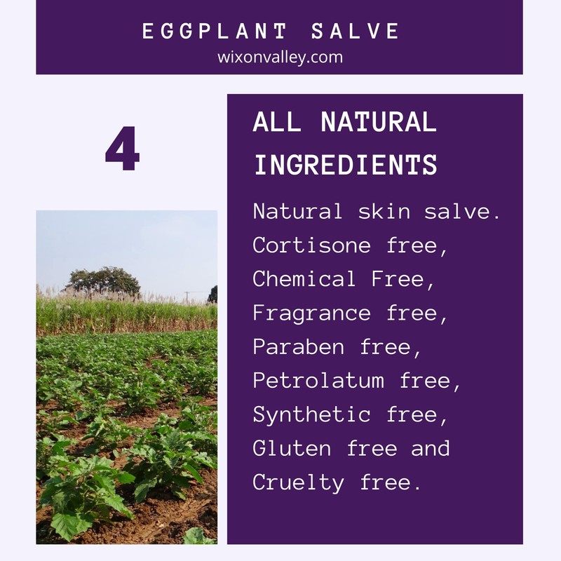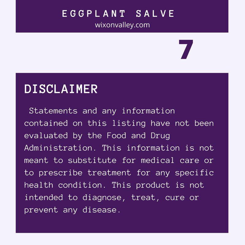 - I'm not going to make any health statements here but you will easily google and find out what " eggplant salve/tincture " is used for.