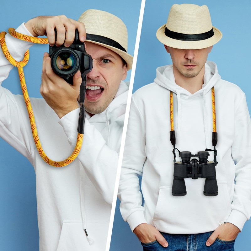 The Fashionable and minimalist-inspired design adds a touch of sophistication to your gear, while the durable rope construction ensures long-lasting use. Whether you're exploring the great outdoors or capturing precious moments, our Binocular and Camera Strap keeps your equipment safe and within easy reach.