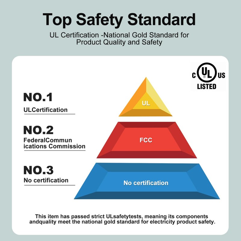 • Safe Charging: UL certified, CE/FCC/RoHS certified, with overheating, over-current, over-voltage and short-circuit protection, safe and reliable use.