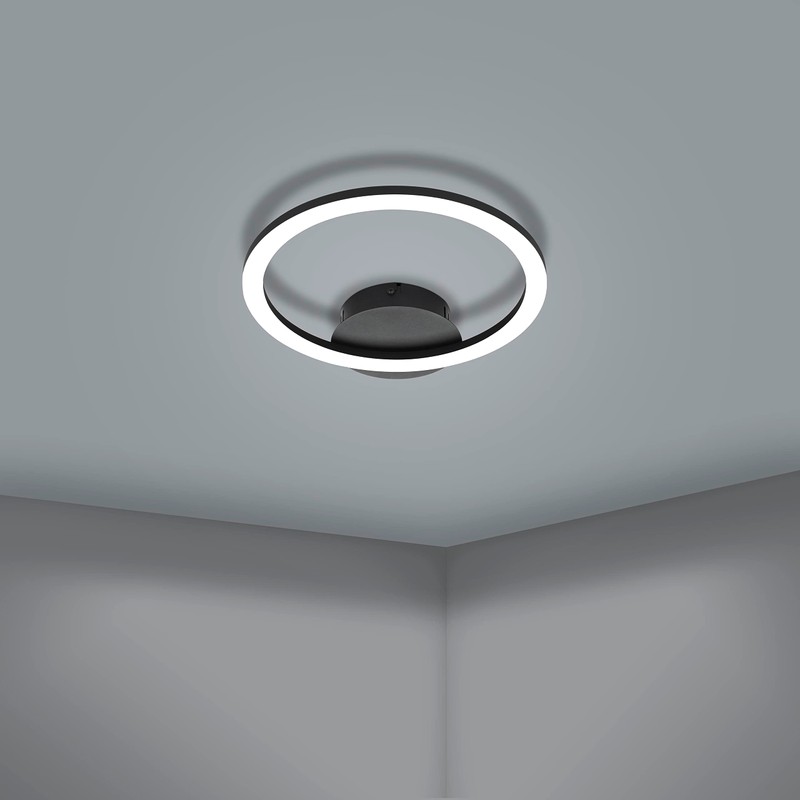 - The Smart Home LED light for the wall and ceiling made of black steel with a round light surface made of plastic in white can be easily set up and controlled via Bluetooth with the free AwoX app and the separately available remote control (EGLO 99099)