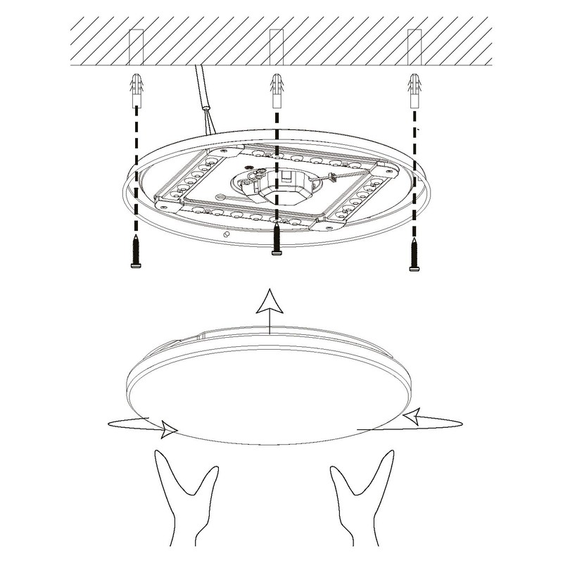 - The round LED ceiling light for bathroom made of white steel with a white plastic lampshade diffuses the light wide and pleasantly into the room and creates a glittering crystal effect when moving