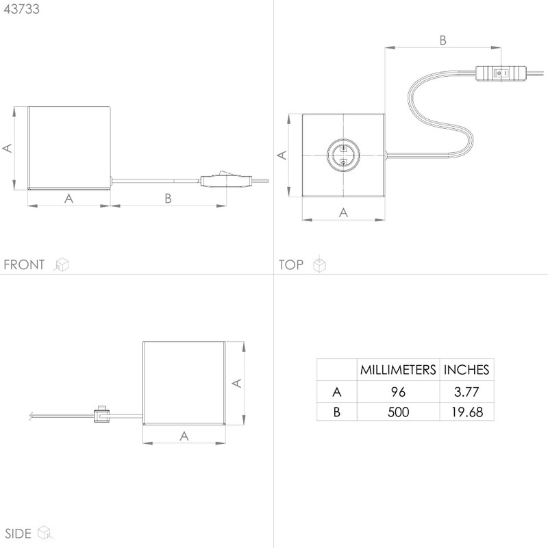 - Dimensions: length: 9.5 cm, width: 9.5 cm, height: 9.5 cm