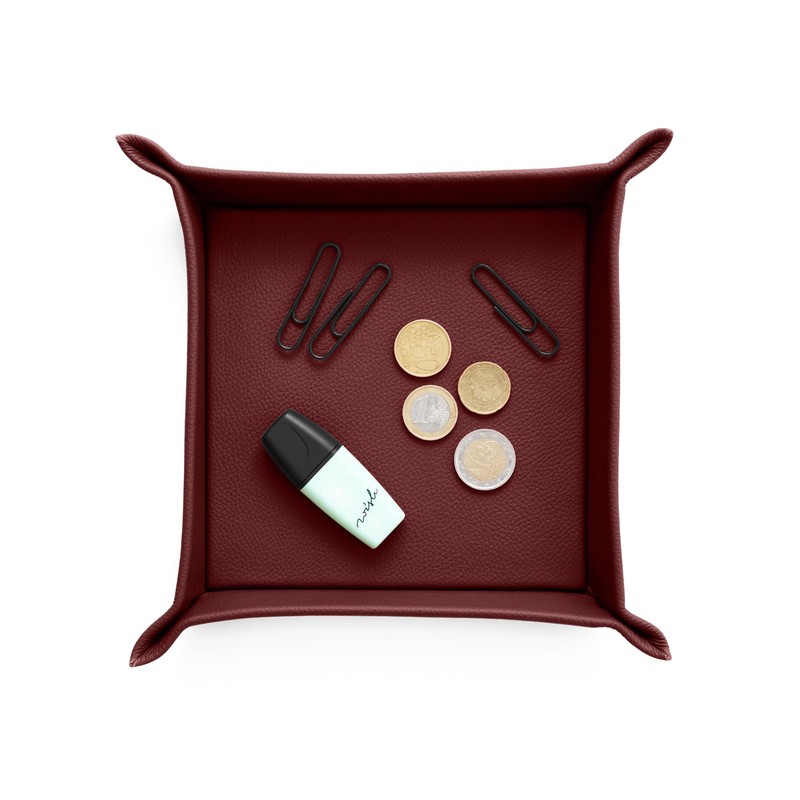 eglooh - Iris - Pocket Empty Made of Genuine Leather Bordeaux Red - Desk Organiser with Modern Design - Storage Compartment for Keys, Coins, Jewellery - cm 18 x 18 cm - Made in Italy