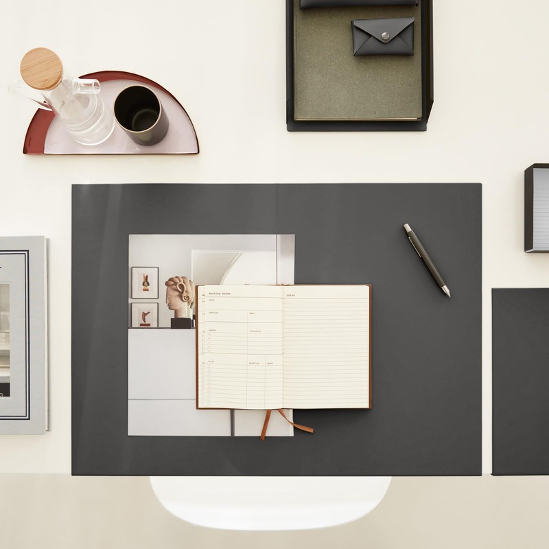 eglooh - Moire - Pocket Empty with Black Steel Structure - Inner Base Made of Leather Anthracite Grey - Desk Organiser with Modern Design - cm 14.5 x 14.5 x H.4 - Made in Italy