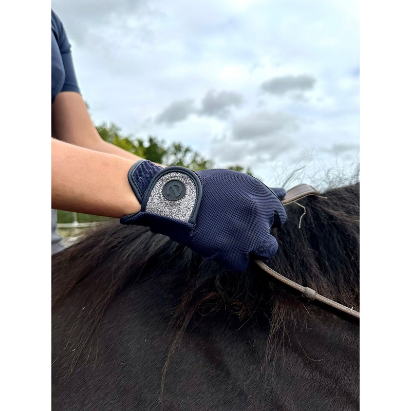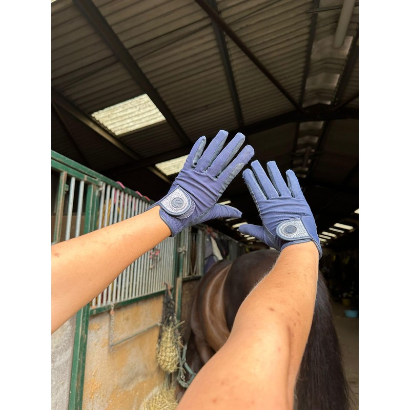 eGlove - eQUEST GripPro X-LITE Horse Riding Gloves - Lightweight, Breathable, Grippy Non-Slip Material - Comfort Mesh Back - Touchscreen Gloves (Blue - Silver Glitter Cuff, XX-Small)