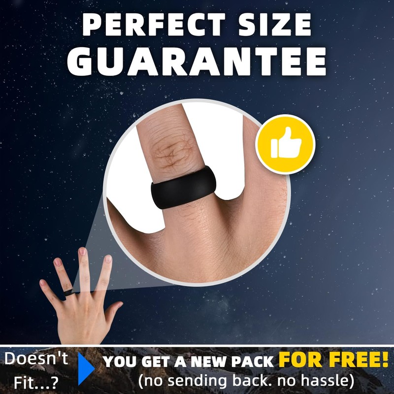 - FLEXIBALE & SAFE: Top grade silicone is hypoallergenic, lightweight and soft. Superior than plastic rings in elasticity, skin adaptability and will break away while rubber wedding bands are under extreme stress to protect fingers. Easy to accommodate temporary swollen fingers or large knuckles and ideal for guys working with tools or electronics