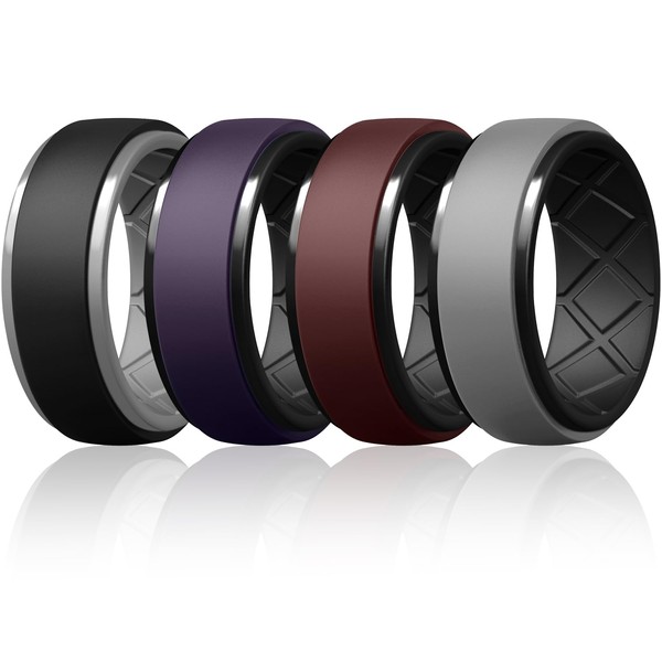 Egnaro Silicone Rings For Men, Rubber Wedding Bands For Him, 10.5mm Wide 2.8mm Thick, Breathable Design Step Edge