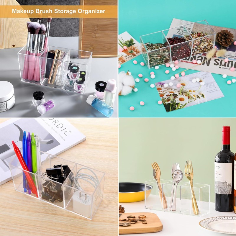 egniFurn 3-Compartment Acrylic Pen Holder – Clear Desk Organizer for Pens, Pencils, Markers, Multi-Use Desk Organizer for Office, School, Includes Heart-Shaped Sticky Note