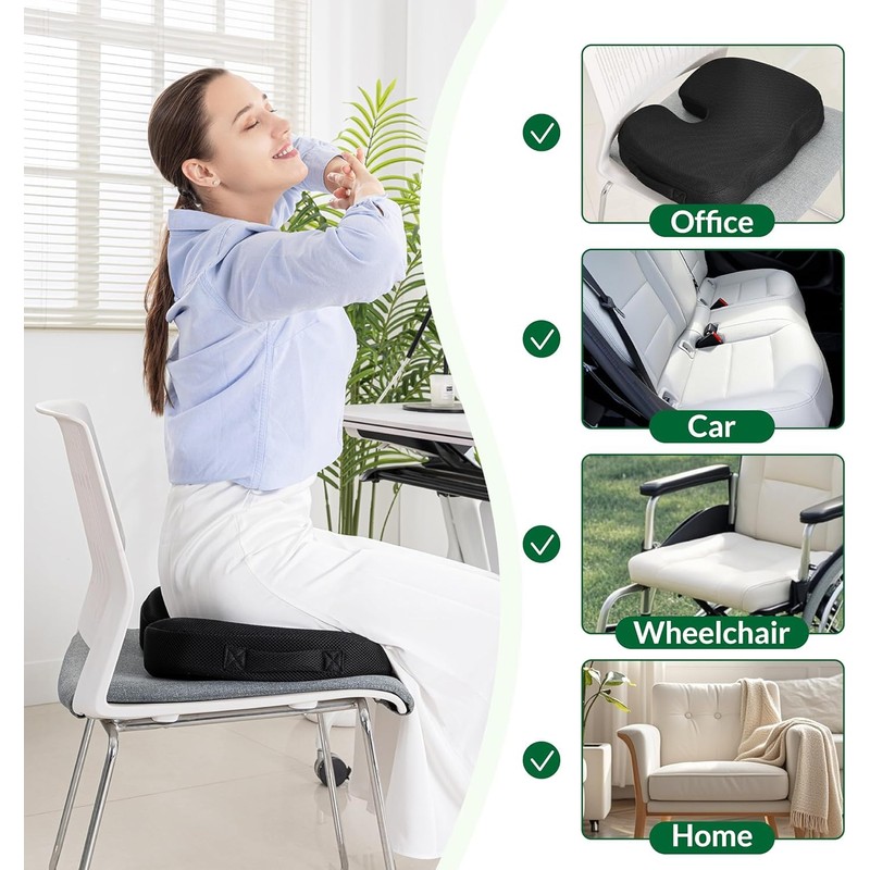 - Komfortables Sitzerlebnis: Mit Fokus auf Komfort sorgt dieses Memory-Schaum-Kissen dafür, dass langes Sitzen keine Belastung mehr darstellt. Das ergonomische Design fördert eine bessere Körperhaltung und hilft, Belastungen für Rücken und Nacken zu reduzieren. Benutzer werden die Unterstützung der natürlichen Körperkurven zu schätzen wissen, was Müdigkeit und Unbehagen bei langem Sitzen verringert. Ob am Schreibtisch, im Auto oder im Flugzeug – dieses Kissen macht jeden Sitz komfortabler und fördert eine gesündere Haltung.