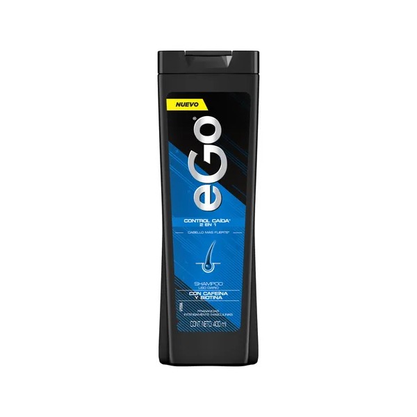 EGO Shampoo control cada 2 en 1 con cafena y biotina reduce la cada del cabello y deja una fragancia intensamente masculina 400ml