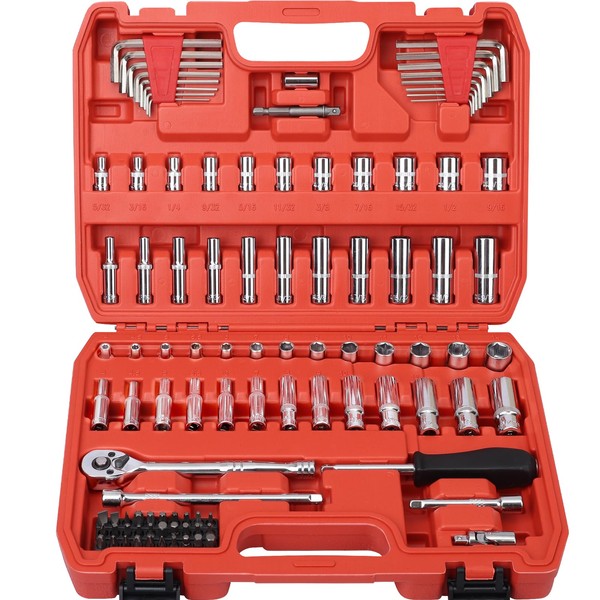 Egofine 1/4”Drive Socket Ratchet Wrench Set,101 PCS Metric(4-14mm),SAE(5/32-9/16”),with 72-Teeth Ratchet Wrench,Bit Socket Set,Extension Bar,Allen wrench for Auto Repair and Household