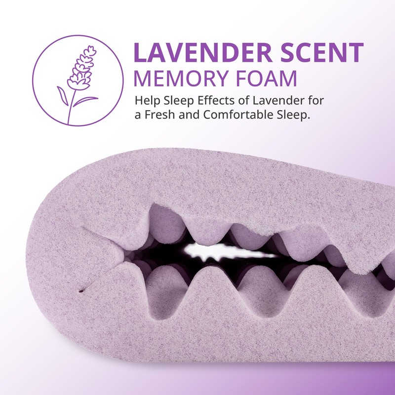 - LAVENDER SCENT - The tiny channels on the surface of the topper help facilitate air circulation, while the Lavender Scent Memory Foam Layer creates a calm and comfortable sleeping environment.
