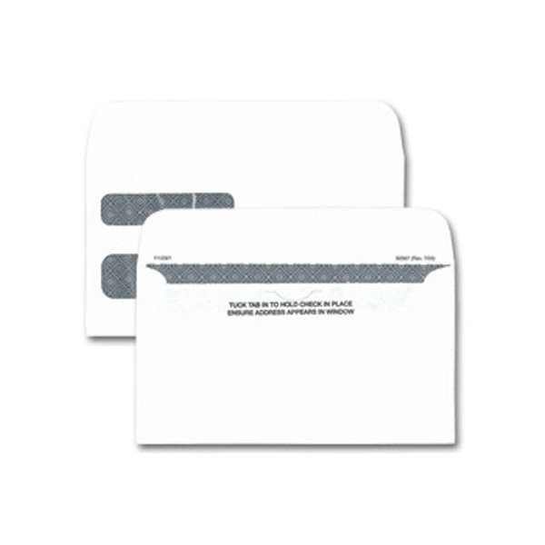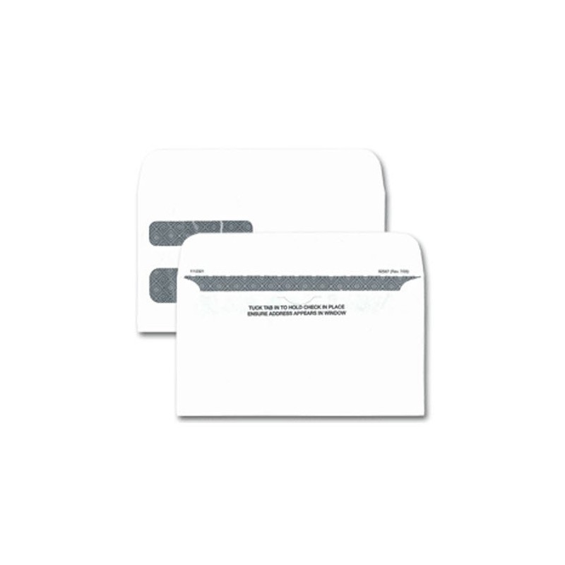Item Number 92567 Our double window envelopes will save you hours of addressing time and they are security-lined. Special callouts are available. Add any message you need. Barcode and postal FIM's also available Envelope Size: 6 3/16 x 3 9/16 Upper window 2 5/8 x 5/8 and 5/16 form left and 2 13/16 from bottom Lower window 3 1/8 x 7/8 and 5/16 from left and 3/4 from bottom.