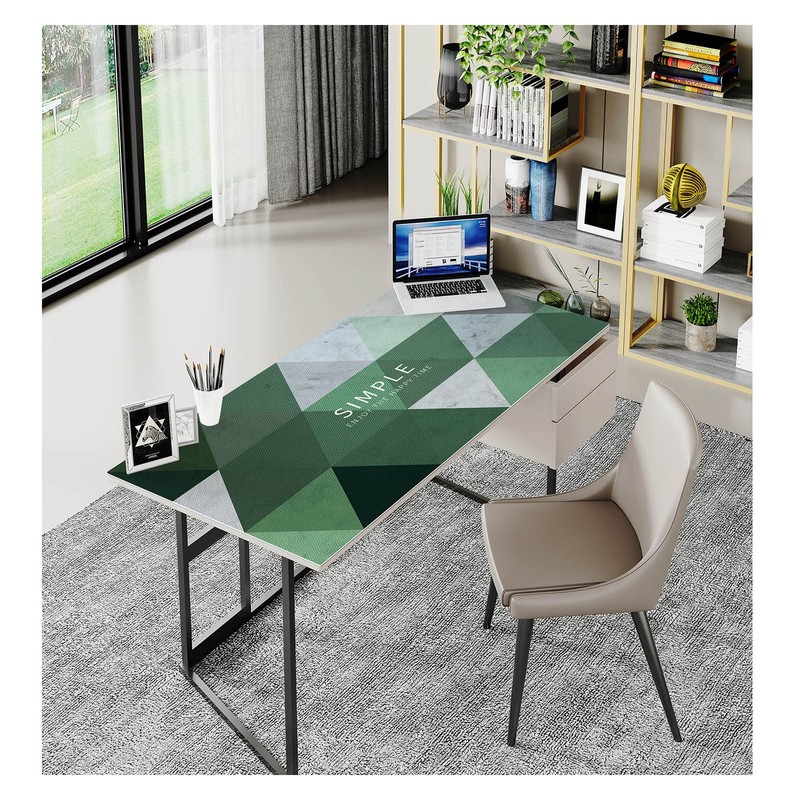 EGT Geometry Waterproof Leather Tablecloth, Table Protector for Study Computer Desk, Home Office Writing Small Desk (40 L x 19 W, Mocha Green Triangle)