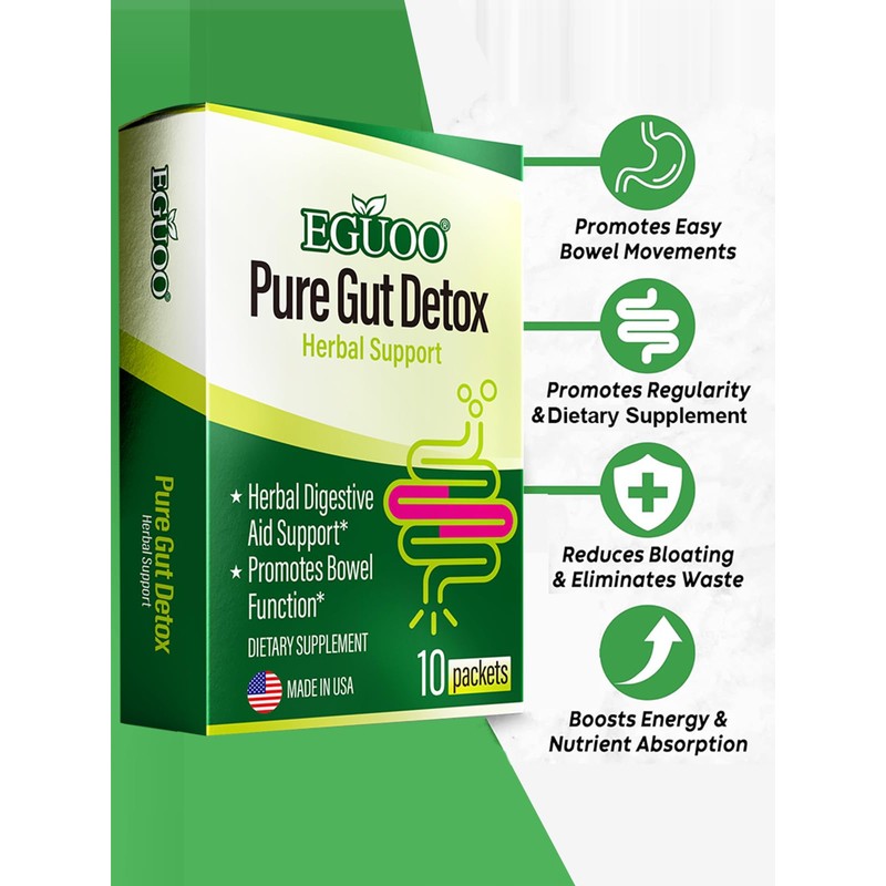 - Supports Digestive Health - EGUOO Pure Gut Detox supports healthy and regular bowel movement and elimination to build-up in the gut and cleanse toxins and waste from your body.