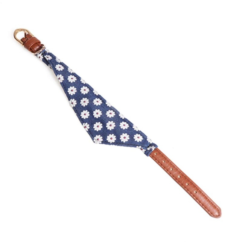 Egurs Adjustable Sunflower Blue Dog Cat Leather Collar with Bow Tie for Small Medium Dog Cat Collor with Bow Tie, s