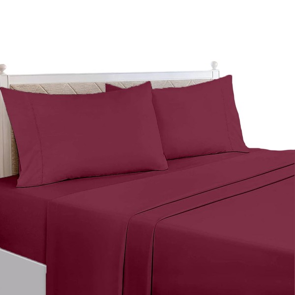Egypto Easy Care Super King Flat Sheet – Breathable & Hypoallergic Flat Sheets – Shrinkage & Fade Resistant Flat Bed Sheet Wine