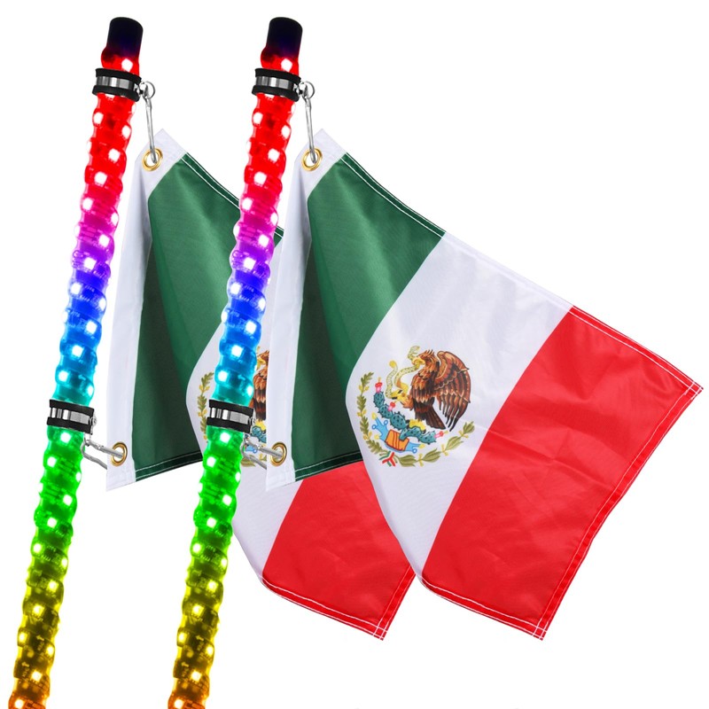 Ehaho 2PCS Mexico Flags for Whip Lights or Antenna Flag Poles, Whip Light Mexican Flags for UTV ATV Can-Am Polaris RZR SXS (16.7" x 12")