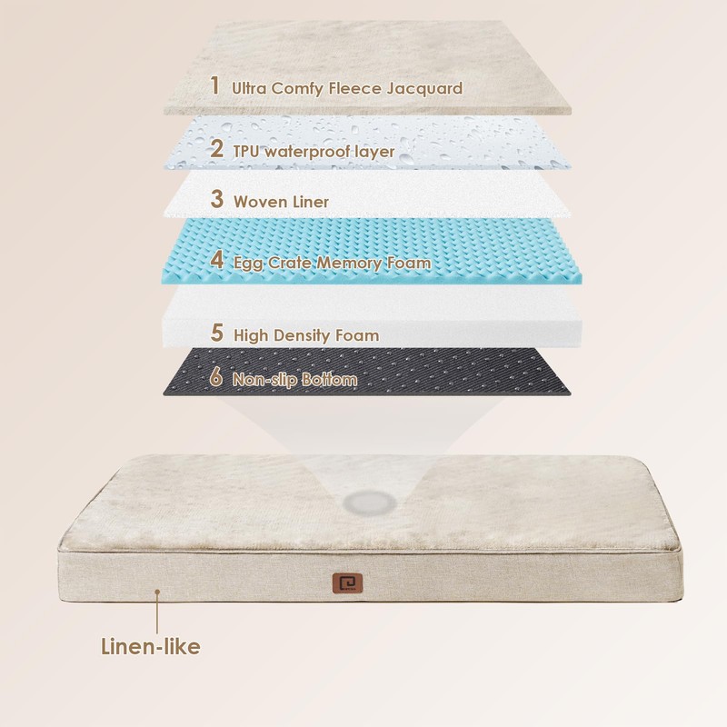 - WATERPROOF LINER: EHEYCIGA memory foam dog bed has a waterproof liner which effectively protects the memory foam and increases its durability.