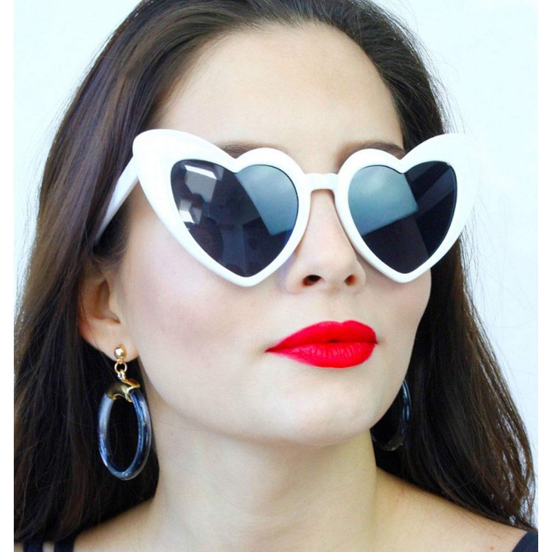 EHH - Heart Shaped Cateye Sunglasses (White, Smoke)