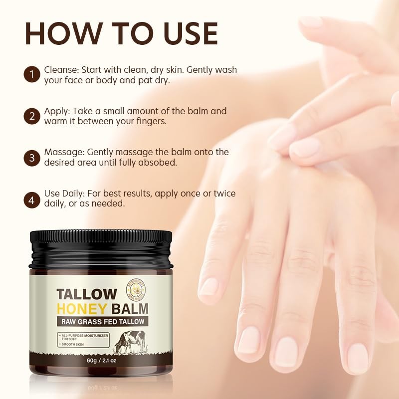- Stärkt die Hautbarriere: Die Rindertalg Honigcreme stärkt die Hautbarriere und hilft dabei, Hautrötungen sowie Empfindlichkeiten zu lindern. Diese milde Talgcreme enthält nur natürliche Zutaten wie Honig und Bienenwachs, die der Haut helfen, ihre natürliche Schutzfunktion zu regenerieren und die Haut von innen heraus zu reparieren. Sie ist sicher und für alle Hauttypen geeignet.