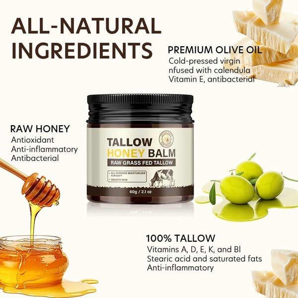 - Vielseitige Hautpflege: Unsere Rindertalg Honigcreme bietet nicht nur entzündungshemmende und beruhigende Eigenschaften, sondern unterstützt auch die Kollagenproduktion. Sie erhöht die Hautelastizität, reduziert Falten und macht die Haut glatt und strahlend. Dank der natürlichen Inhaltsstoffe ist diese Creme perfekt für die tägliche Anwendung und auch als Geschenk für Ihre Liebsten geeignet.