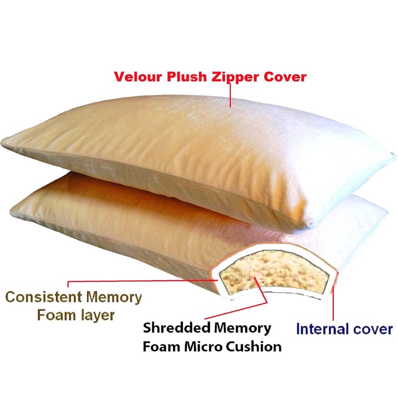 - Pillow core is filled with gel micro cushions shredded memory foam and wrap by high density consistent memory foam layer to provide the best comfort and support in balance. The pillow also comes with internal cover and Removable, Washable, additive Free velour plush zipper cover. Soft velour plush cover boasts lasting quality, wash after wash.