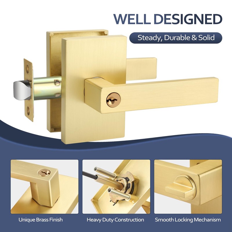• 🔐Entry Door Handle with Single Deadbolt: Door lock set consisting of a heavy duty entry door handle and a single deadbolt. The entry door knob makes it convenient to access, while the single deadbolt enhances security and brings defense to your house. Not only that, the lock set is artistically designed in a satin brass finish. This simple and elegant style is suitable for decorating modern style doors