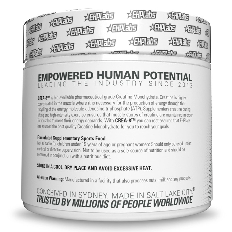 EHP Labs CREA-8 Creatine Monohydrate Powder - Unflavored Creatine Powder for Muscle Growth, Increased Strength, Enhanced Energy Output and Improved Performance - 100 Servings (500g)