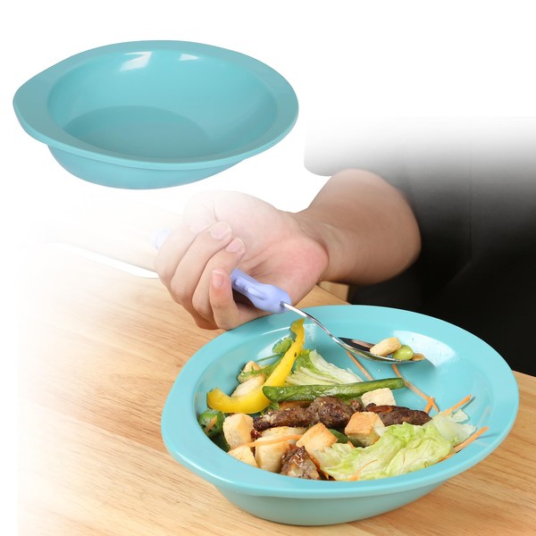 - 1. Ergonomic Design for Limited Mobility – Specially crafted concave edges and raised slopes allow users with arthritis, Parkinson’s, or hand tremors to scoop food effortlessly,promoting self-feeding