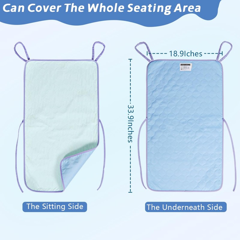 - Portable – measure 18.9"X33.9",easy to fold and put into your Wheelchair Back Bag. Also waterproof and extra fluid absorbent to cover the whole seating area. It is great to be used on most wheel chairs and geriatric furnitures.