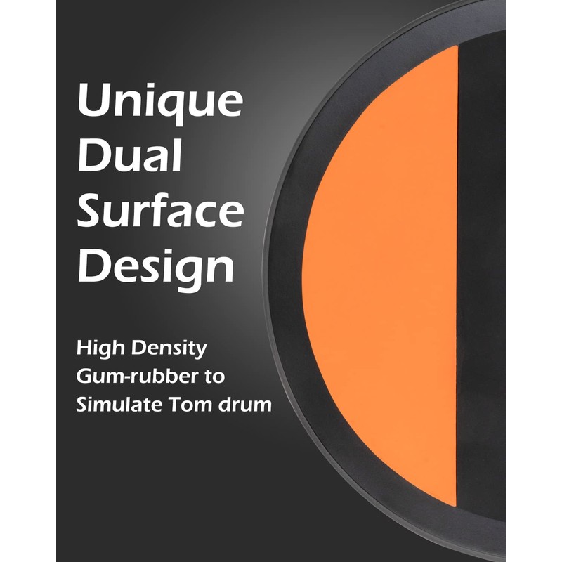 - Great Elasticity - It is the ultimate training tool for drummers of all skill levels. Measuring 11.4 inches in diameter and weighing only 3.3 lbs, this portable and durable pad is made of high-density compressed wood and flexible gum-rubber. The orange side offers a stiffer response, simulating the feel of a tom drum, while the black side offers a normal response, simulating the feel of a snare drum. This versatile design allows you to train your hands accurately.