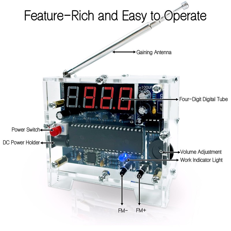 • 【Upgrade Loudspeaker】 The finished product of this kit after welding is a radio with a delicate transparent shell, the transparent acrylic shell design is not only beautiful and generous, but also effectively protect the internal circuitry and components. The upgraded amplifier is bigger than before, and the sound effect is more mellow.