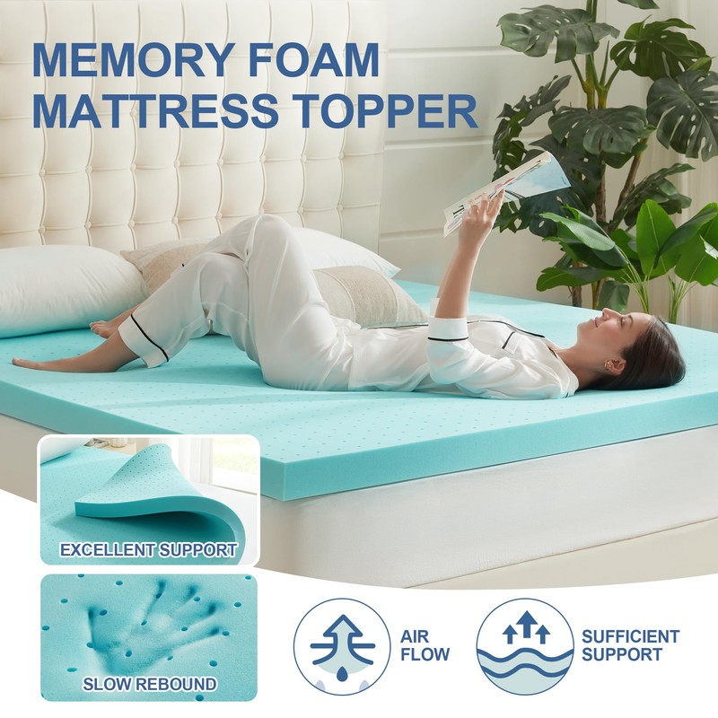 Eiayeebil 2 Inch Memory Foam Mattress Topper Twin, Mattress Pad Gel Infused Foam Bed Topper, Ventilated Soft Blue,Twin Size